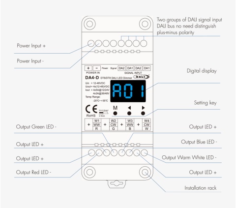 4CH DALI Controller (DT6/DT8), 12-48VDC, 4x5A @24