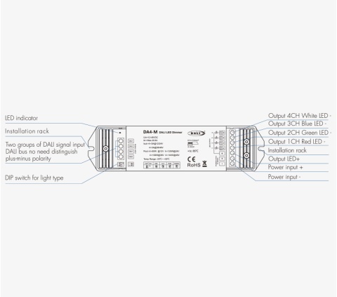 4CH DALI Din-rail Controller (DT6/DT8), 12-48VDC, 4x5A@24V